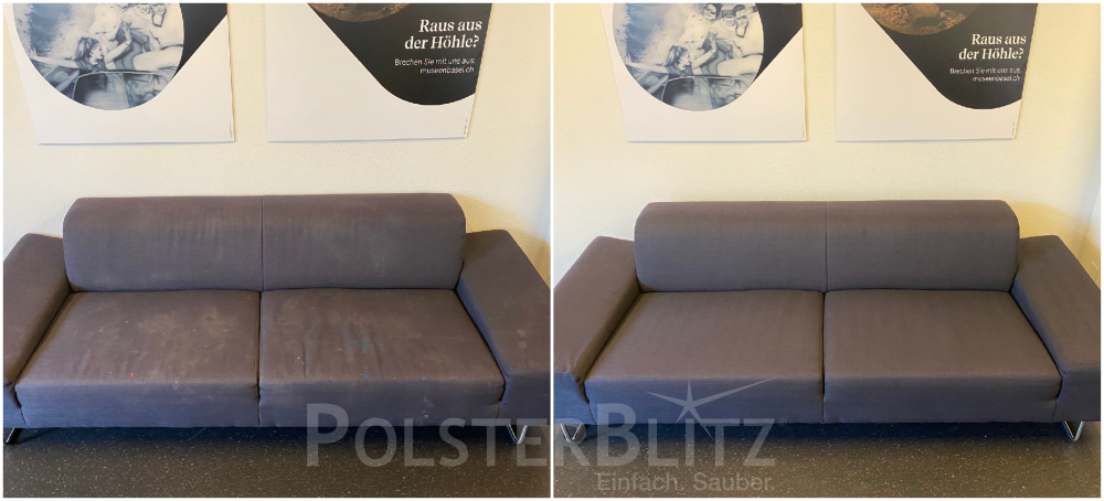 Mit einem materialschonenden Reinigungsverfahren wird das Polster tiefenwirksam gesäubert. Die Verschmutzungen lösen sich, die Fasern wirken wieder aufgerichtet, und der Stoff erhält seinen ursprünglichen Farbton zurück. Durch die anschließende Imprägnierung bleibt die Oberfläche länger geschützt. Die Imprägnierung ist ideal für stark frequentierte Sitzmöbel.